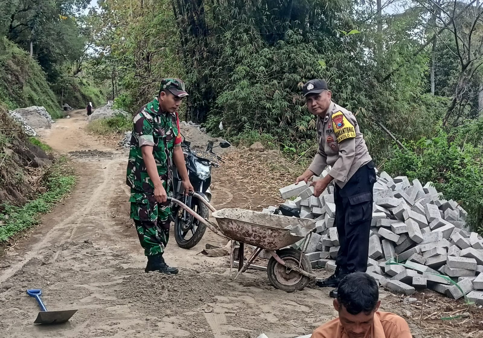 ” Alhamdulillah hari ini kami bersama Bhabinkamtibmas ikut bergabung pada salah satu kegiatan yang dilakukan warga Dusun Suka Makmur Desa Ngilo Ilo yaitu pemasangan paving jalan, ” ujar Serka Wiyono.