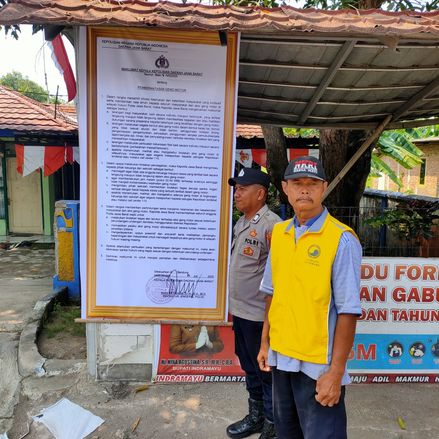 Indramayu – Polsek Gabuswetan Polres Indramayu Polda Jabar menyebarkan Maklumat Kapolda Jawa Barat ke berbagai titik strategis, sebagai upaya nyata memberantas aksi premanisme dan geng motor, Senin (11/8/2025).