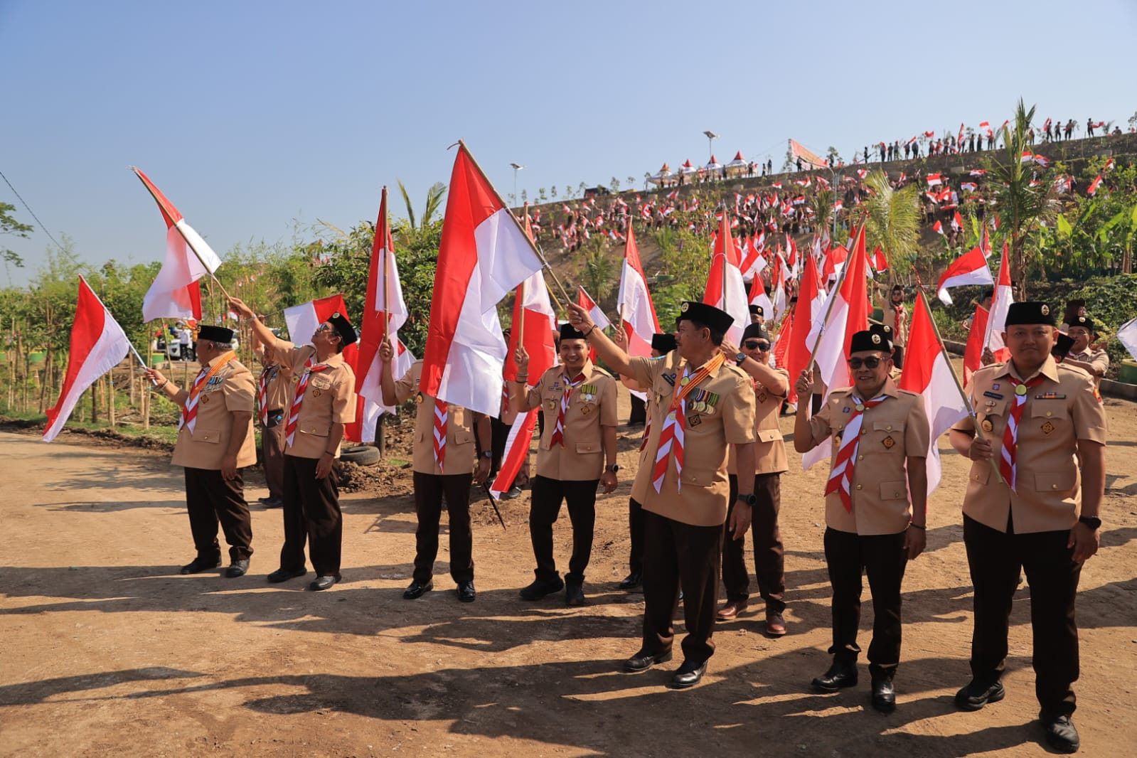 Puncak acara ditandai dengan pengibaran bendera Merah Putih di titik tertinggi TPA Winongo oleh seluruh peserta upacara, menegaskan semangat kebersamaan dan optimisme dalam mewujudkan perubahan positif bagi lingkungan.