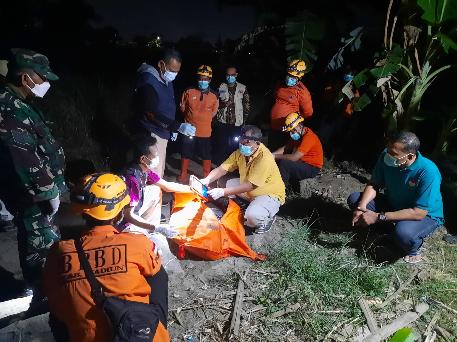 Evakuasi berhasil dilakukan sekitar pukul 18.30 WIB. Tim Unit Identifikasi Sat Reskrim Polres Madiun Kota yang datang bersama Piket Reskrim dan SPKT melakukan pemeriksaan awal. Mengingat kondisi mayat telah membusuk, jenazah segera dibawa ke ruang instalasi forensik RSUD dr. Soedono Madiun untuk pemeriksaan lebih lanjut.