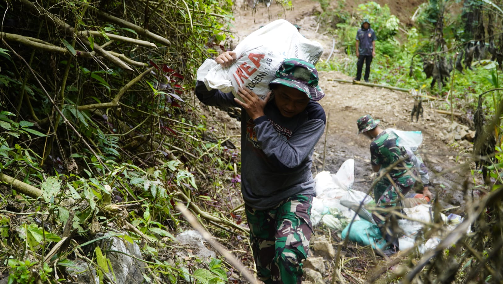 Medan yang terjal dan licin menjadi tantangan tersendiri. Setiap langkah harus diperhitungkan, setiap tarikan napas menjadi bagian dari irama perjuangan. Mereka memanggul besi, pipa, dan peralatan, semua demi satu tujuan: membangun tandon air yang akan menjadi sumber kehidupan warga di lereng perbukitan Desa Ngranget.