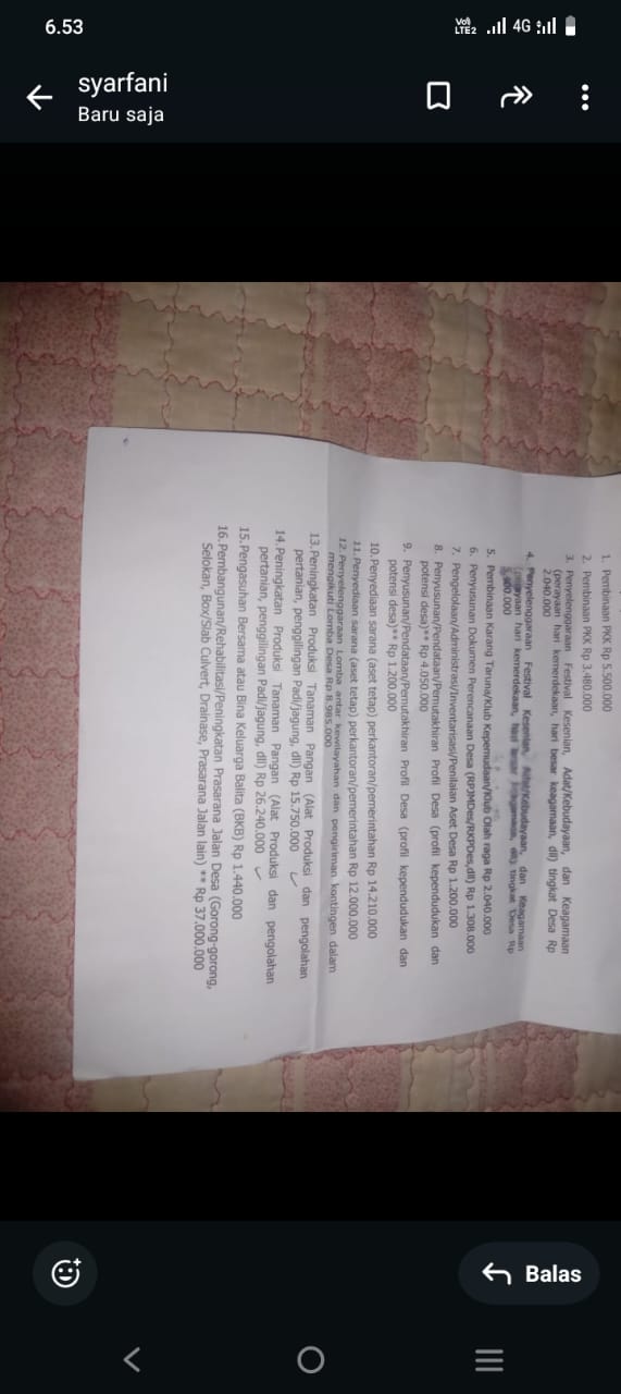 Krinci-Jambi.Kepala Desa Pendung Mudik Semurup Masih Terkesan Bungkam Terkait Pengelolahan Dana Desa ( DD) Tidak Transparan Warga Minta Kejaksaan Dan Kapolres Kerinci Segara Bertindak.