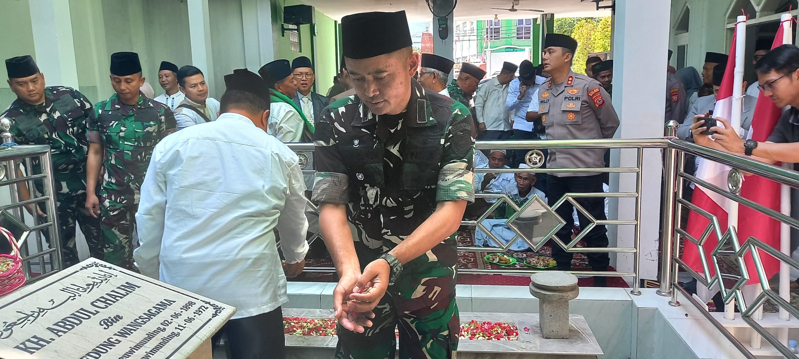 Majalengka – Dalam rangka memperingati Hari Ulang Tahun ke-80 Kemerdekaan Republik Indonesia, Dandim 0617/Majalengka Letkol Inf Fahmi Guruh Rahayu bersama rombongan melaksanakan ziarah ke Makam Pahlawan Nasional Pejuang Kemerdekaan sekaligus Pendiri Nahdlatul Ulama (NU), KH Abdul Chalim, di Jalan Raya Selatan No. 09, Desa Leuwimunding, Kabupaten Majalengka, Sabtu (16/8/2025).