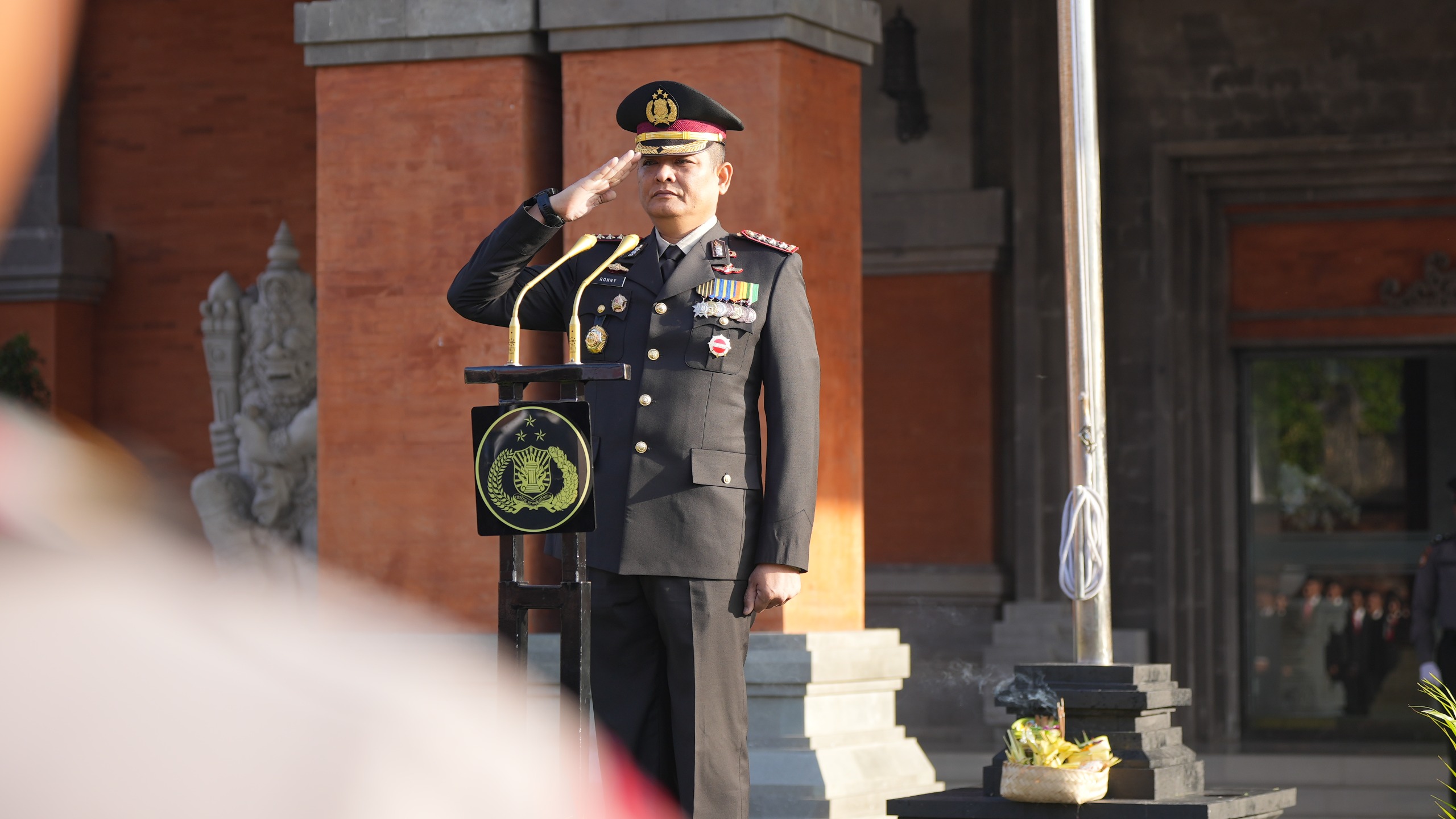 Kepolisian Daerah Bali (Polda Bali) menggelar Upacara pengibaran bendera dalam rangka memperingati Hari Ulang Tahun (HUT) Ke-80 Kemerdekaan Republik Indonesia (RI) yang digelar di Halaman Depan Mapolda Bali Minggu (17/8/2025) pagi.