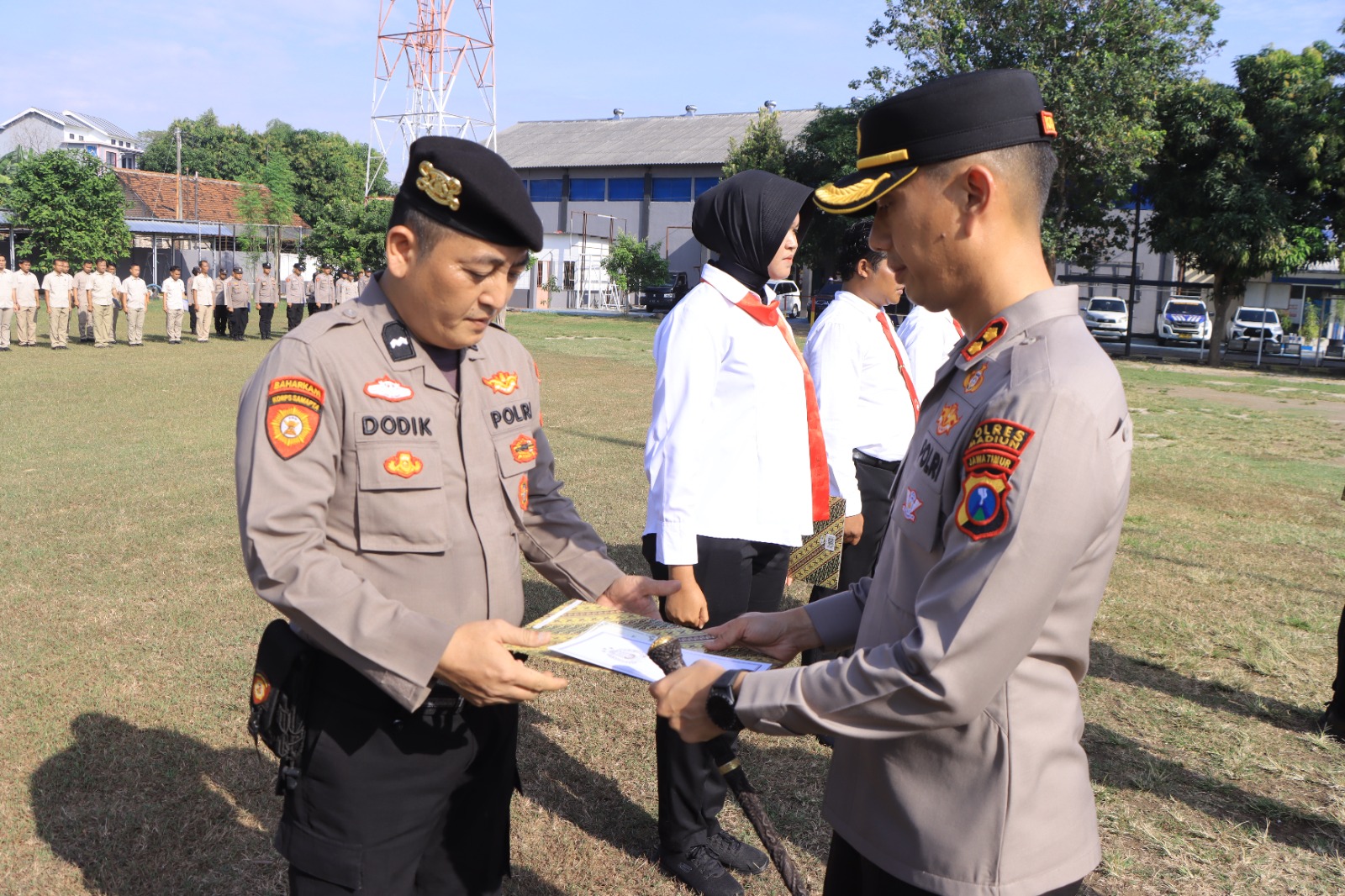 Madiun, – Kapolres Madiun AKBP Kemas Indra Natanegara, S.H., S.I.K., M.Si. memberikan penghargaan kepada sejumlah personel atas dedikasi dan prestasi gemilang dalam melaksanakan tugas kepolisian. Pemberian penghargaan tersebut berlangsung di Lapangan Tri Brata Mapolres Madiun, Selasa (19/8).