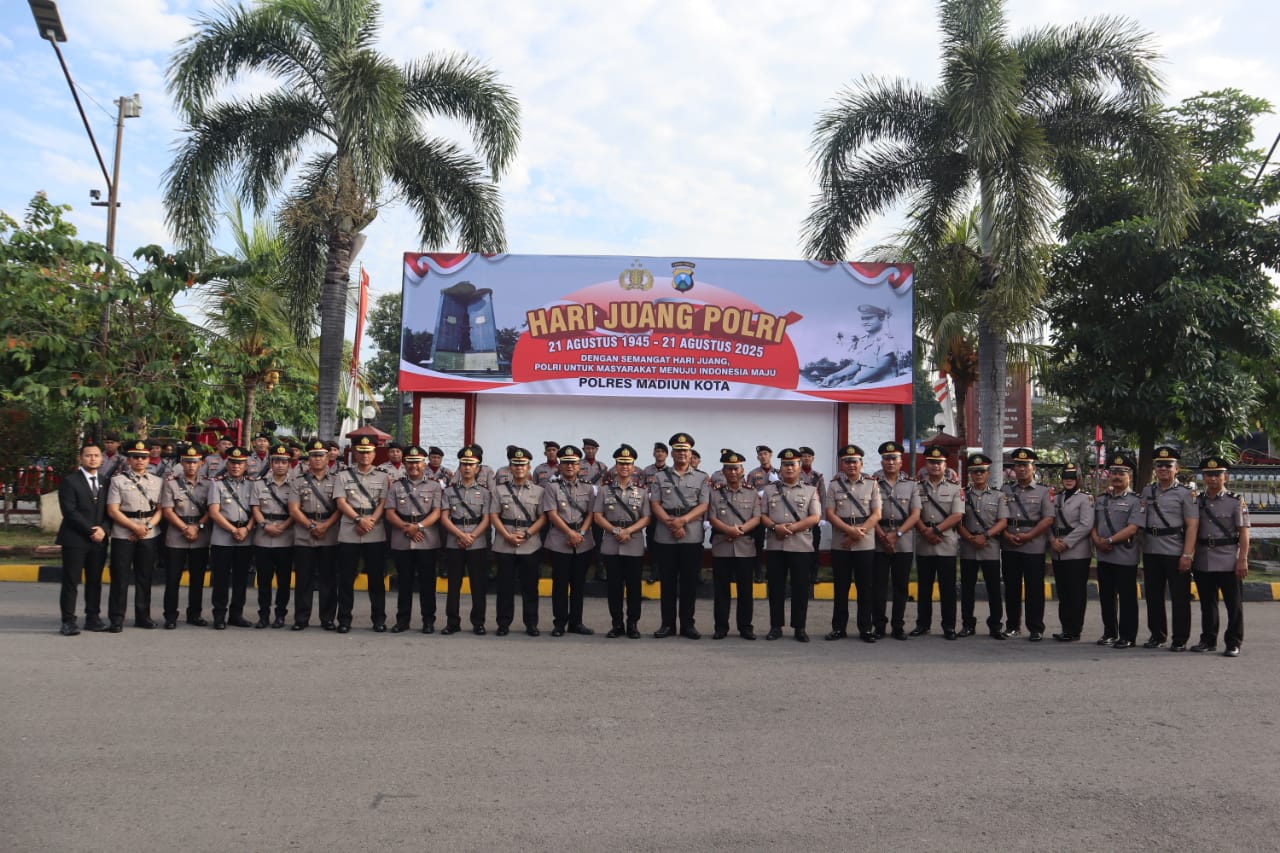 MADIUN, BUSERJATIM.COM GROUP – Polres Madiun Kota menggelar upacara memperingati Hari Juang Polri pada Kamis (21/8/2025) di halaman Mapolres Madiun Kota. Upacara berlangsung sejak pukul 07.00 WIB., bertindak selaku inspektur upacara Kompol Dr. I Gusti Agung Ananta SH. , SIK., MH. dan diikuti oleh seluruh personel Polres Madiun kota dan Polsek jajaran.