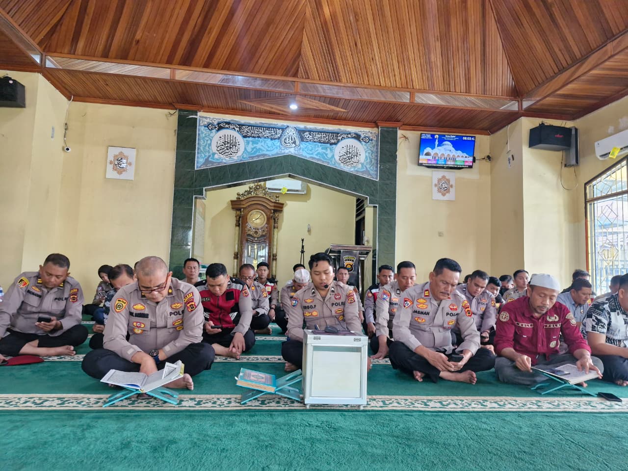 Merangin – Jambi. Guna meningkatkan keimanan dan ketaqwaan terhadap tuhan yang maha ESA, personil Kepolisian Resor (Polres) Merangin mengikuti program kegiatan Pembinaan Rohani dan Mental (Binrohtal) yang dilaksanakan secara rutin setiap hari Kamis di Masjid At- Taubah Polres Merangin.