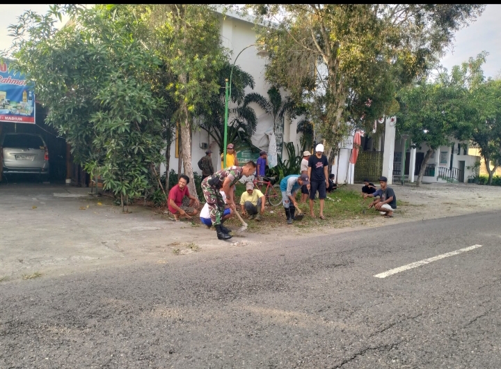 Dalam kegiatan tersebut, Babinsa bersama warga bergotong-royong membersihkan lingkungan sekitar. Sampah dan rumput liar yang menumpuk di tepi jalan maupun selokan menjadi sasaran utama pembersihan. Suasana kekompakan tampak jelas, warga dengan antusias bahu-membahu demi menciptakan lingkungan yang lebih bersih dan sehat.