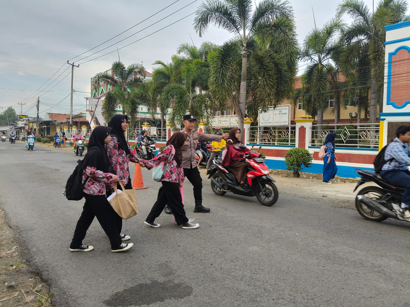 Indramayu – Dalam upaya menjaga keselamatan pelajar saat beraktivitas, Polsek Gabuswetan jajaran Polres Indramayu Polda Jabar melaksanakan kegiatan pengamanan bagi pelajar yang menyebrang jalan di sekitar area sekolah, di wilayah hukum Polsek Gabuswetan, Kabupaten Indramayu, Rabu (17/9/2025)
