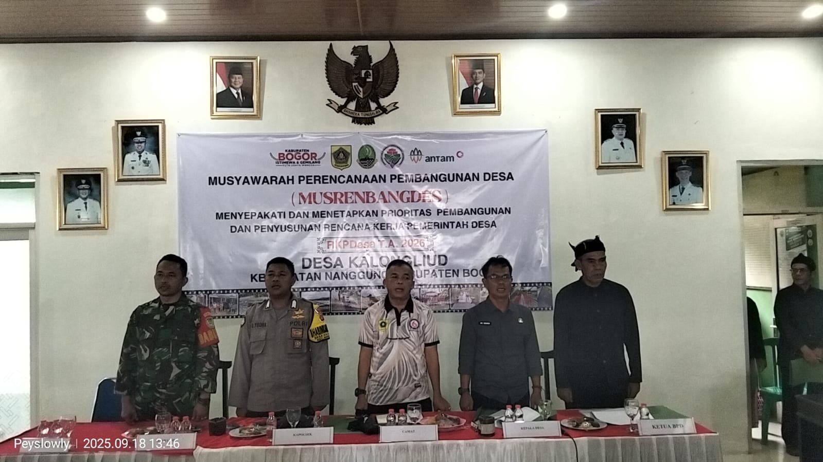 Bogor – Bhabinkamtibmas Desa Kalongliud Polres Bogor Polda Jawa Barat Bripka Dody Yudha bersama Babinsa Desa Kalongliud Serda Supriyadi menghadiri kegiatan Musyawarah Perencanaan Pembangunan Desa (Musrenbang RKPDes) Desa Kalongliud Kecamatan Nanggung Tahun Anggaran 2026. Kegiatan ini berlangsung di Aula Kantor Desa Kalongliud Kecamatan Nanggung Kabupaten Bogor pada Kamis (18/09/2025).