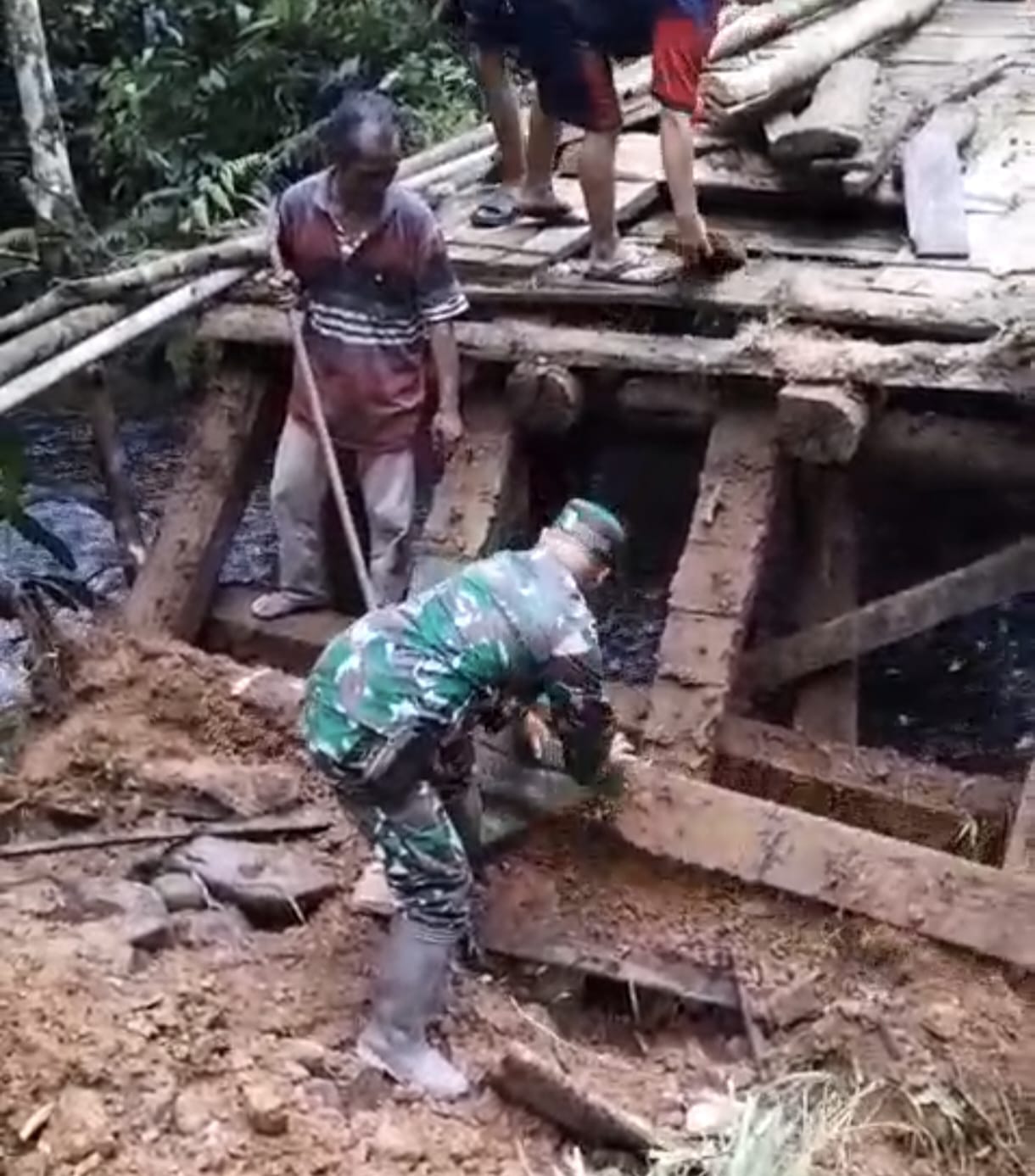 Berkat kerja sama yang solid antara Babinsa dan warga, jembatan akhirnya dapat dilalui kembali baik oleh kendaraan roda dua maupun roda empat.