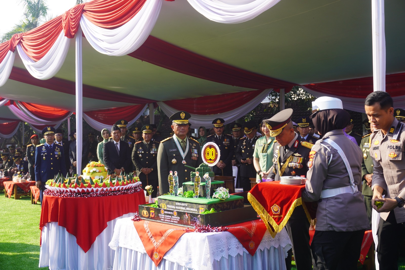 Pada upacara peringatan Hari Ulang Tahun (HUT) Ke-80 Tentara Nasional Indonesia (TNI) yang digelar pada Minggu (05/10/2025), Kapolda Jabar, Irjen Pol. Rudi Setiawan memberikan kejutan istimewa dengan pemberian kue ulang tahun. Kejutan ini berlangsung di Lapangan Makodam III/Siliwangi Jl. Aceh No. 69 Kota Bandung, Minggu (5/10/2025)