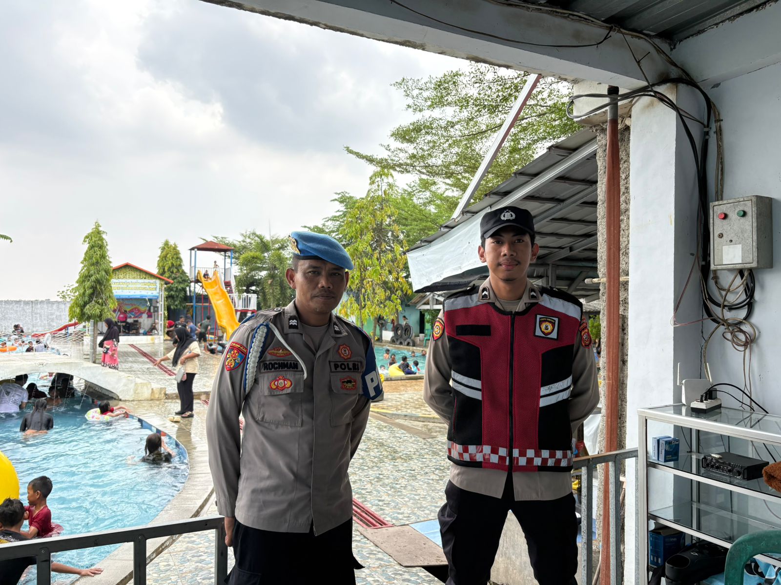INDRAMAYU – Guna memastikan keamanan dan kenyamanan masyarakat yang berlibur di akhir pekan, Polsek Gabuswetan Polres Indramayu Polda Jabar melaksanakan kegiatan patroli serta pengamanan di Obyek Wisata Kolam Renang Party Waterpark, yang berlokasi di Blok Dangdur, Desa Babakanjaya, Kecamatan Gabuswetan, Kabupaten Indramayu, Minggu (19/10/2025).