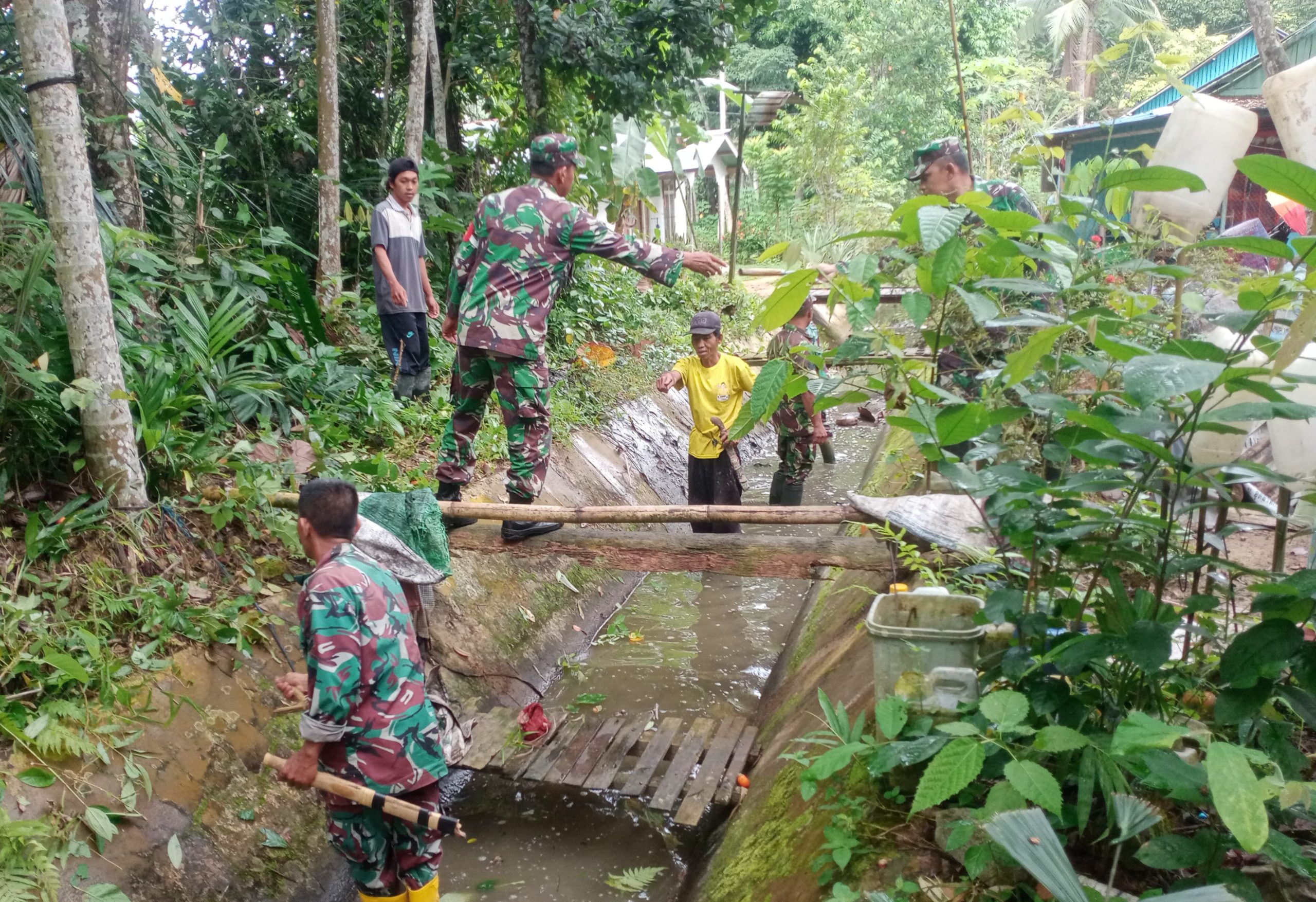 Kemanunggalan TNI-Rakyat, Koramil 1002-03/Haruyan Bersihkan Irigasi Desa
