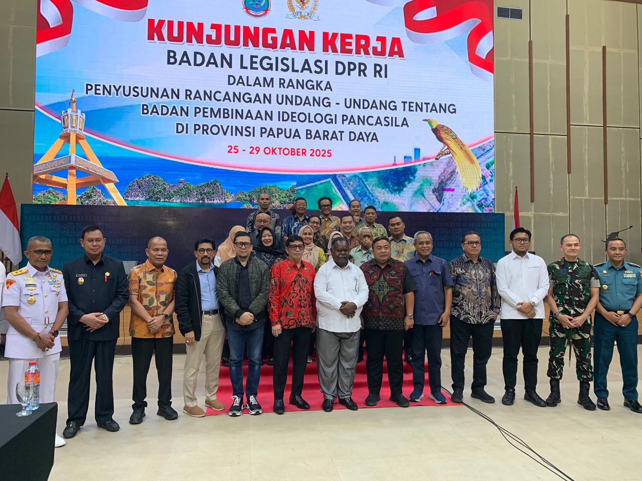 SORONG PBD, BUSERJATIM.COM GROUP – Dalam upaya memperkuat fondasi ideologi bangsa di era globalisasi, Badan Legislasi (Baleg) DPR RI menggelar kunjungan kerja ke Provinsi Papua Barat Daya, Selasa (28/10/2025). Agenda tersebut merupakan bagian dari proses penyusunan Rancangan Undang-Undang tentang Badan Pembinaan Ideologi Pancasila (RUU BPIP) yang tengah digodok di parlemen.