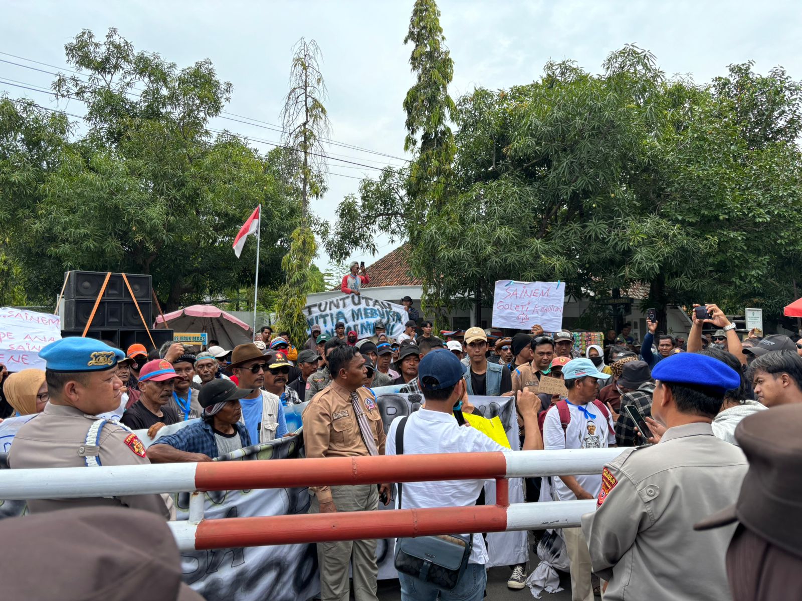 Indramayu – Polres Indramayu Polda Jabar melaksanakan pengamanan aksi damai yang digelar oleh Yayasan Lembaga Bantuan Hukum (LBH) Petani di depan Kantor Bupati Indramayu (Pendopo) serta berlanjut ke Kantor DPRD Kabupaten Indramayu, Senin (01/12/2025).