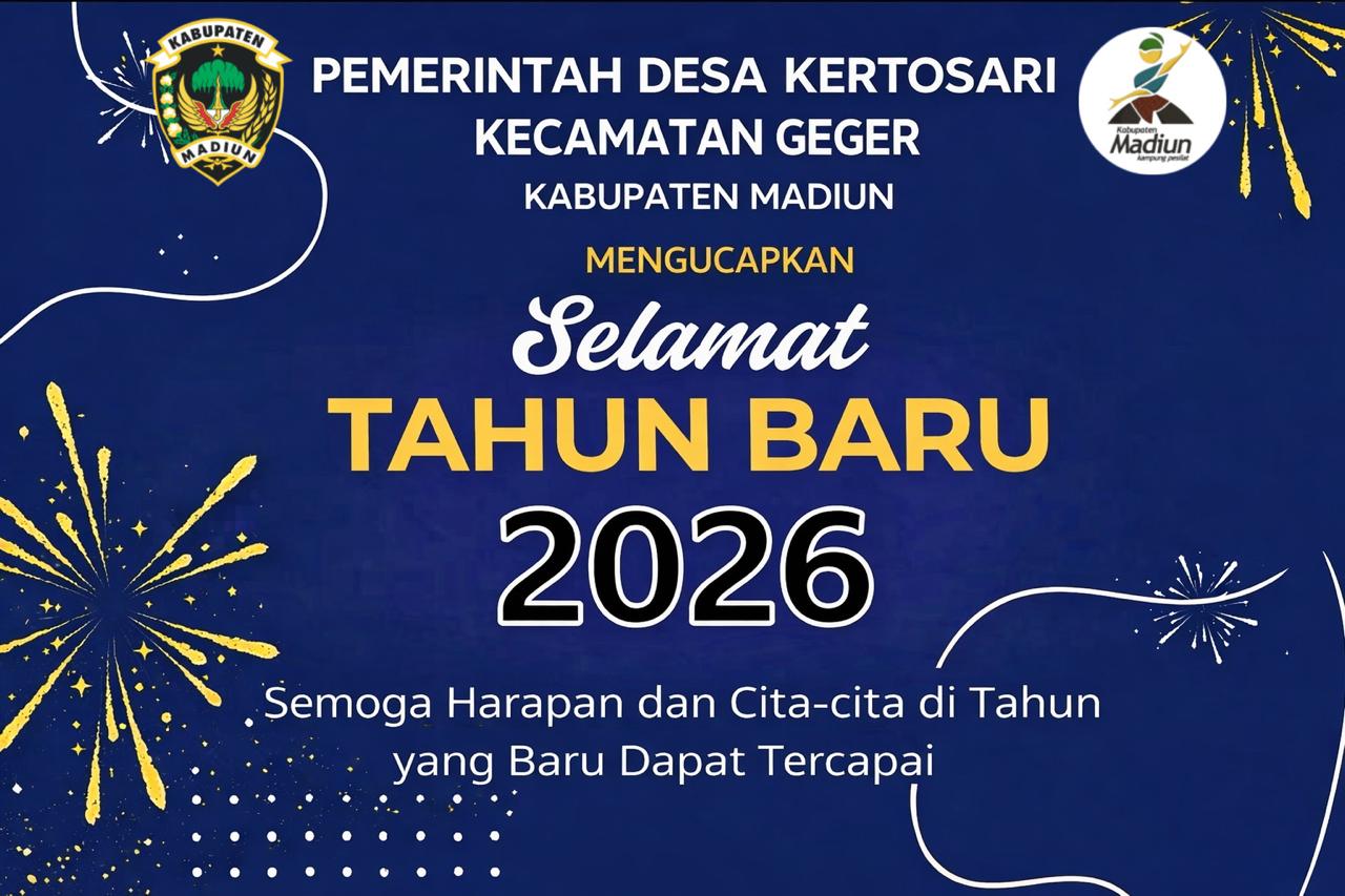 MADIUN,Intelejennews.com— Pemerintah Desa Kertosari, Kecamatan Geger, Kabupaten Madiun, secara resmi menyampaikan ucapan Selamat Tahun Baru 2026 kepada seluruh masyarakat Desa Kertosari dan warga Kabupaten Madiun pada umumnya.