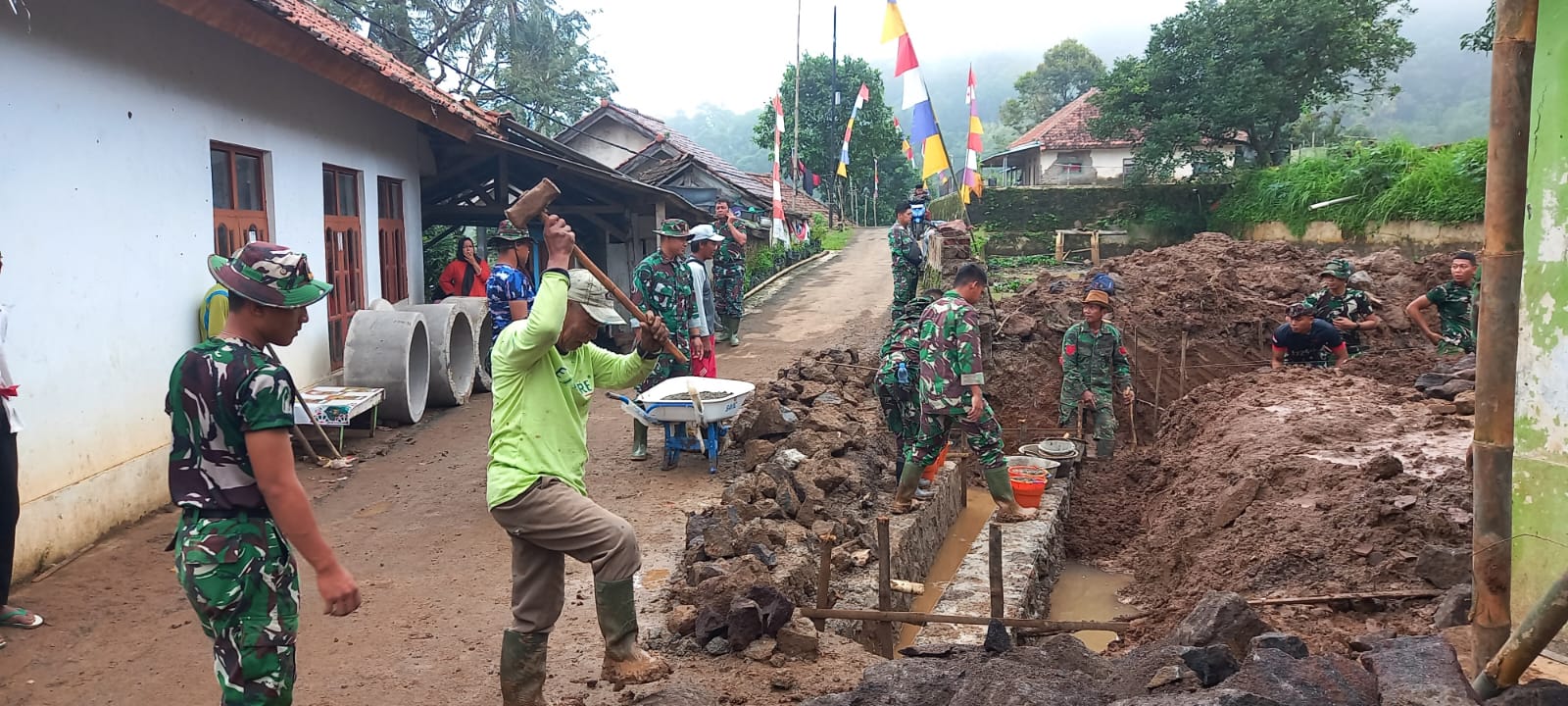 Majalengka – Pembangunan gorong-gorong pada sasaran utama program TNI Manunggal Membangun Desa (TMMD) ke-127 Kodim 0617/Majalengka terus dikebut. Pekerjaan tersebut menjadi bagian penting dari pembuatan jalan sepanjang 1 kilometer dengan lebar 3 meter di Desa Sindangwangi, Kecamatan Sindangwangi, Kabupaten Majalengka, Selasa (17/2/2026).