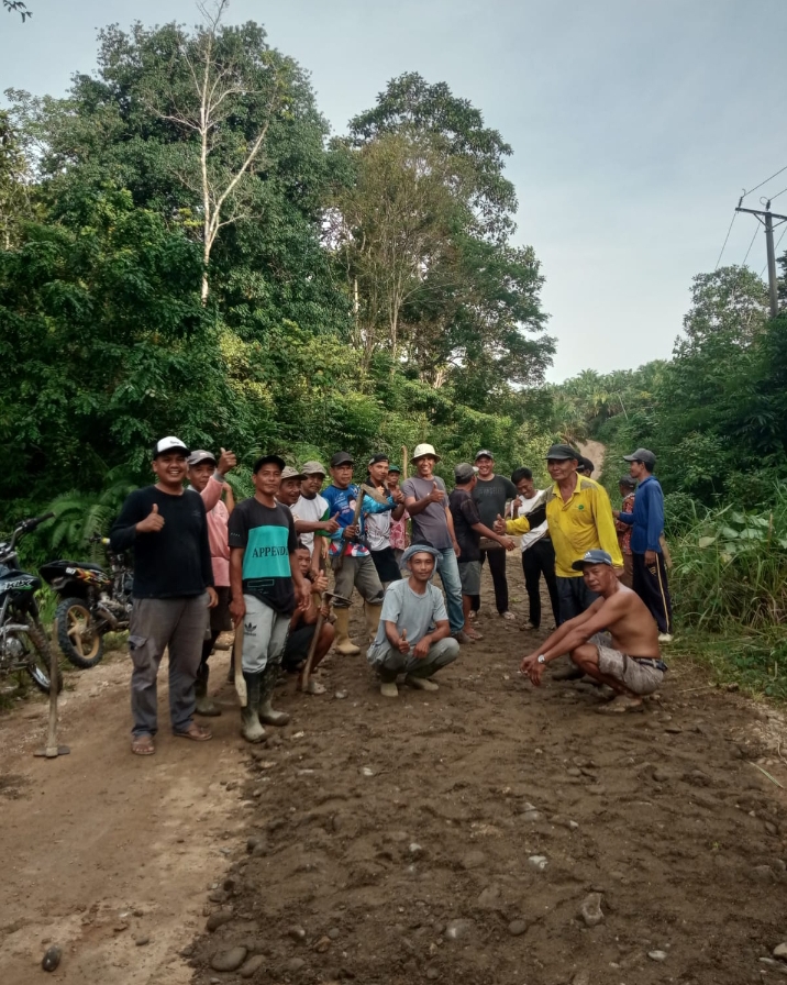 Merangin – Warga Desa Selango, Kecamatan Pamenang Selatan, Kabupaten Merangin, bersama Kepala Desa Anhar terus melakukan perbaikan jalan utama secara swadaya, Sabtu (28/3/2026).