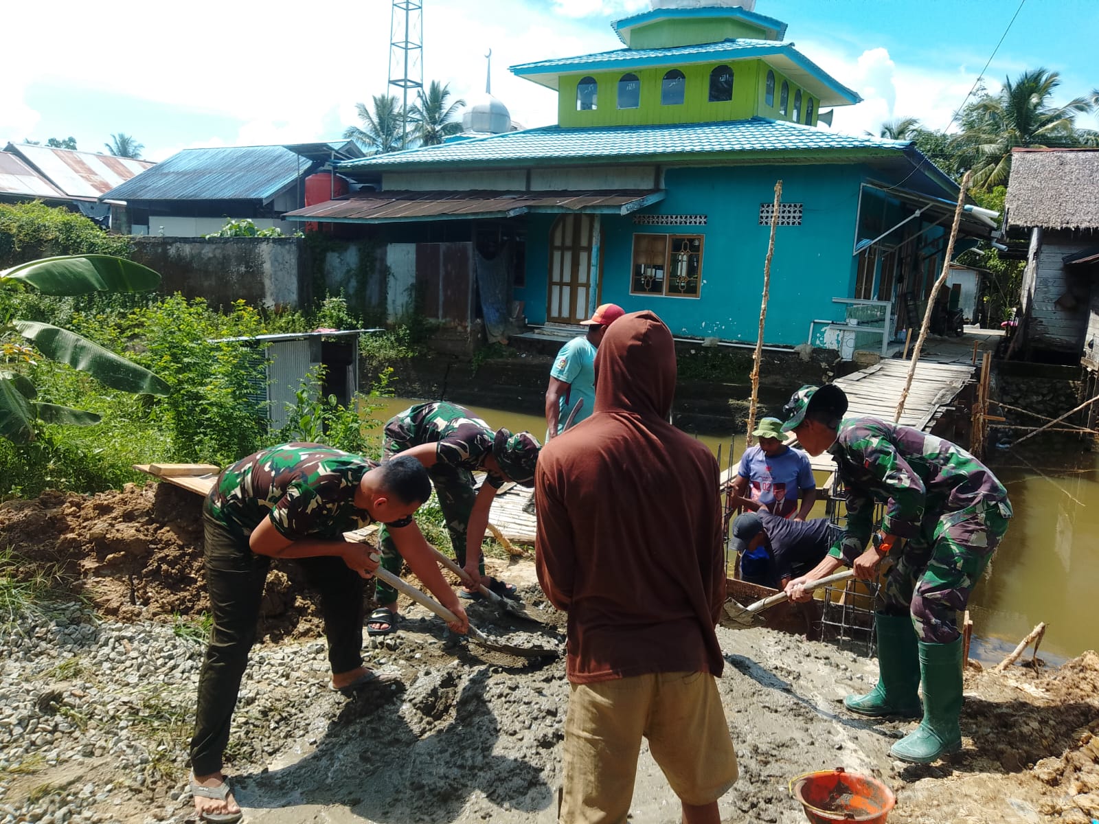“Pengerjaan terus kita kebut dengan melibatkan personel TNI bersama warga. Semangat gotong royong menjadi kunci utama dalam mempercepat pembangunan jembatan ini,” tambahnya.