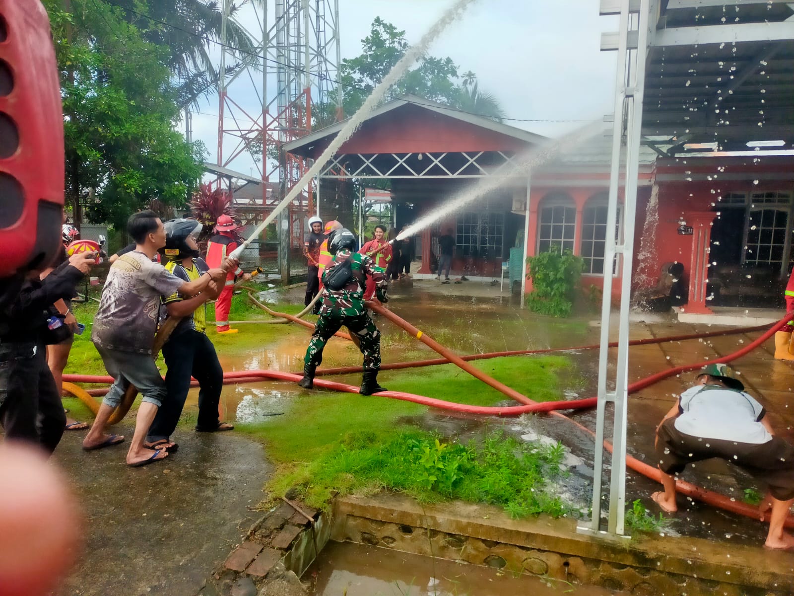 Babinsa Koramil 1002-02/Barabai Serma Sudarwanto yang berada di wilayah binaan turut bergerak cepat mendatangi lokasi kejadian dan membantu proses pemadaman bersama warga, relawan, serta petugas pemadam kebakaran.