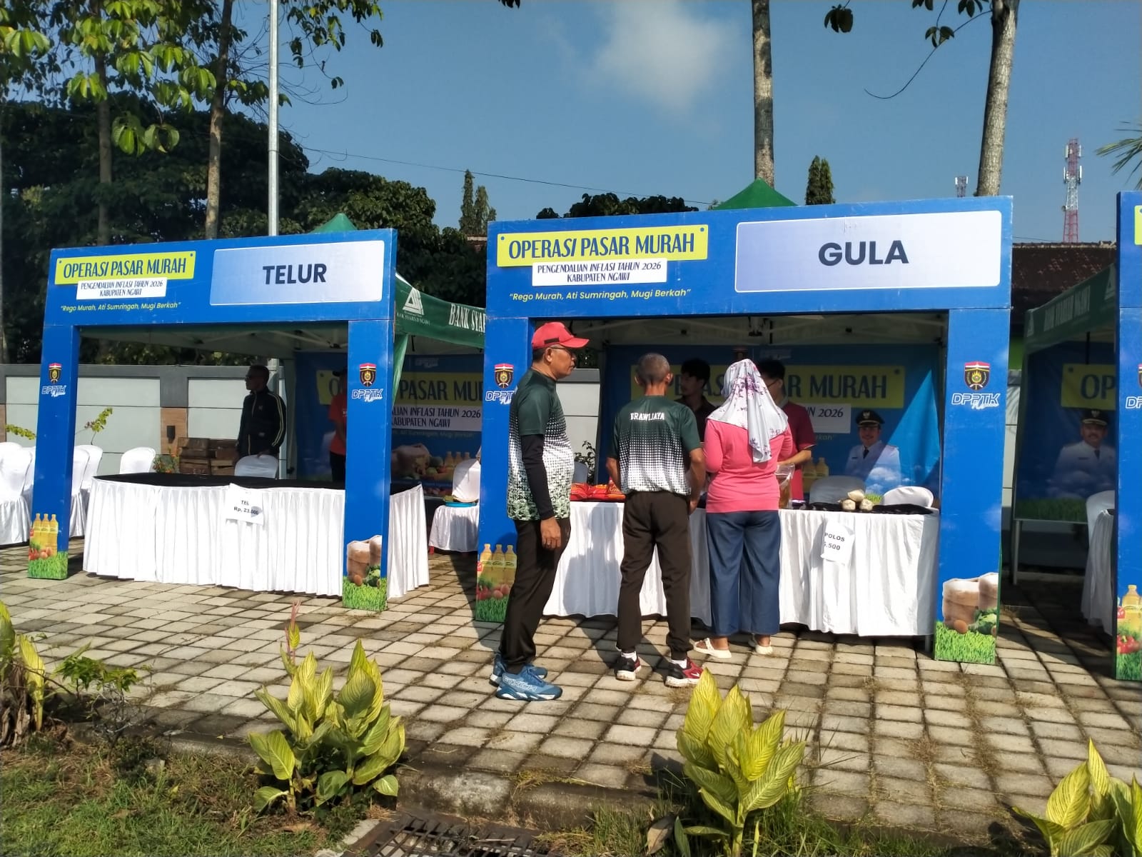 NGAWI, BUSERJATIM.COM GROUP -Dalam upaya membantu masyarakat menghadapi tekanan harga kebutuhan pokok serta mendukung program pemerintah dalam pengendalian inflasi, Anggota Posramil Pitu Kodim Ngawi menghadiri kegiatan Pasar Murah bertempat di Halaman Kantor Kecamatan Pitu, Jum’at (10/04/2026).