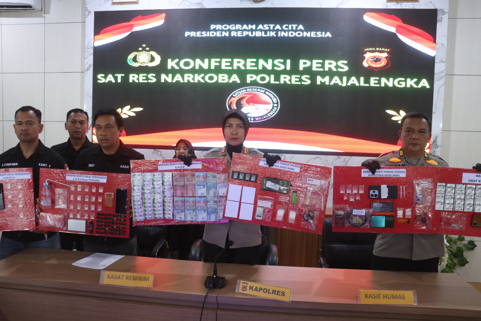 Majalengka, Kepolisian Resor Majalengka Polda Jabar terus menunjukkan komitmen kuat dalam memerangi penyalahgunaan dan peredaran gelap narkotika di wilayah hukumnya. Dalam sebuah konferensi pers yang dipimpin langsung oleh Kapolres Majalengka AKBP Rita Suwadi, S.H., S.I.K., M.M. di Aula Sindangkasih Mapolres Majalengka, pihak kepolisian memaparkan keberhasilan pengungkapan sejumlah kasus narkoba selama periode Maret hingga April 2026, Kamis (16/4/2026).