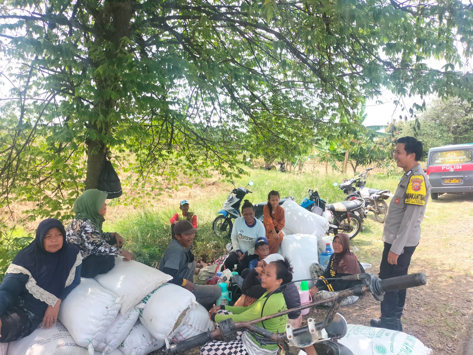 INDRAMAYU – Suasana akrab dan penuh kehangatan terlihat di area pertanian Desa Rajasinga, Kecamatan Terisi, Kabupaten Indramayu, saat Bhabinkamtibmas Polsek Terisi Polres Indramayu Polda Jabar, Bripka Dono Wardono, duduk bersama warga yang sedang beristirahat di sela-sela aktivitas mereka, Senin (20/4/2026) kemarin.