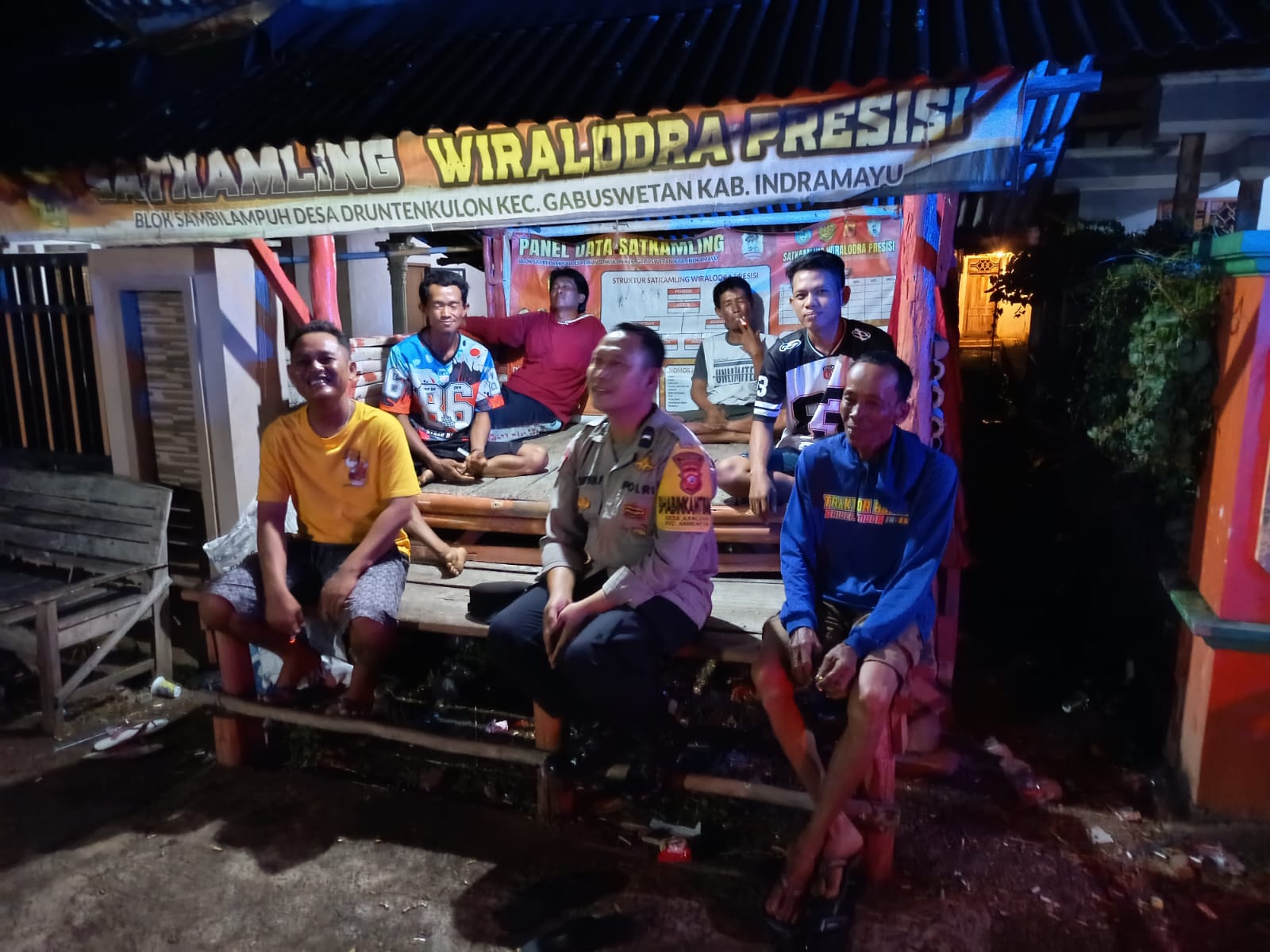 Dalam kunjungan sambang kali ini, petugas kepolisian menyapa langsung warga yang sedang berjaga di Pos Satkamling Wiralodra Presisi, tepatnya di Blok Sambilampuh, Desa Druntenkulon, Kecamatan Gabuswetan.