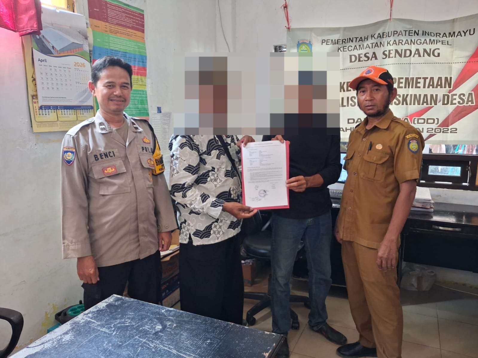 Personel Bhabinkamtibmas Polsek Karangampel Polres Indramayu Polda Jabar Aipda Benci memediasi perselisihan keluarga yang terjadi di wilayah Kecamatan Karangampel, Kabupaten Indramayu, Rabu (22/4/2026).