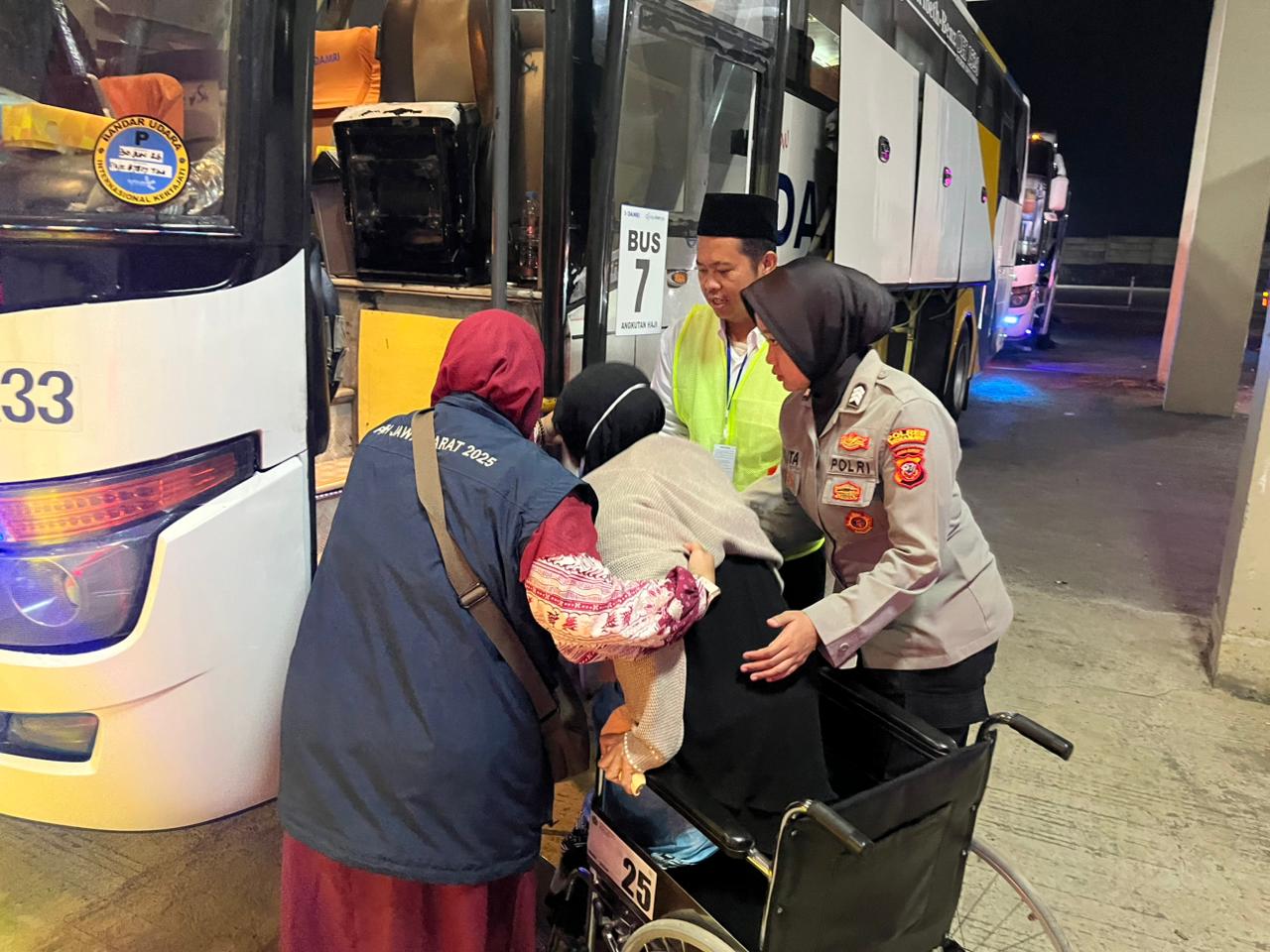Sejak Jumat (24/4/2026) dini hari pukul 04.00 WIB, Polwan Polres Indramayu tampak sibuk namun penuh kehangatan membantu proses kedatangan dan keberangkatan para jemaah.