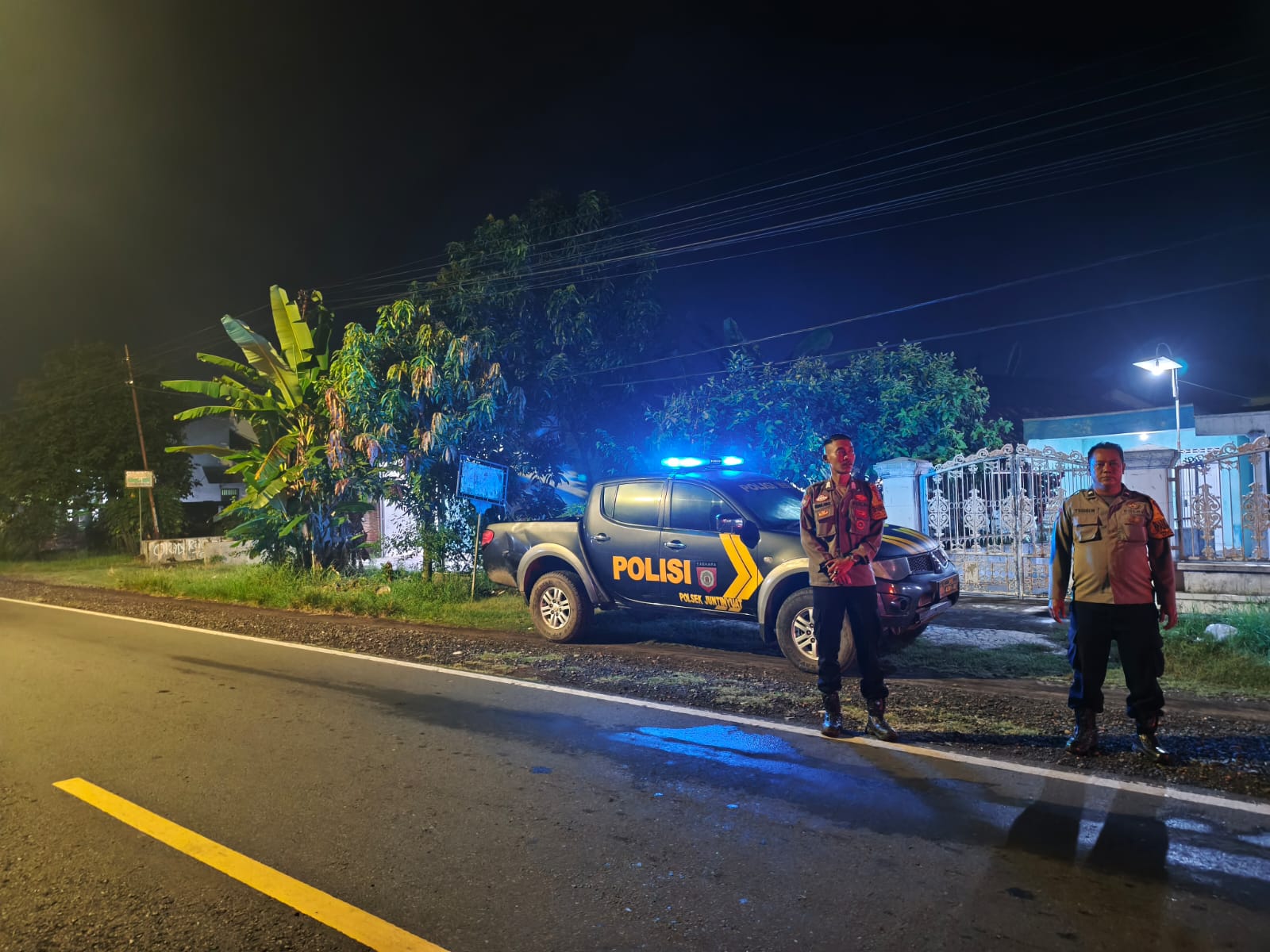 INDRAMAYU,- Personel Polsek Juntinyuat Polres Indramayu Polda Jabar melaksanakan kegiatan Patroli Strong Point Wiralodra Presisi Minggu dini hari (26/4/2026).