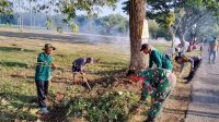 Babinsa Gandul Ajak Warga Kerja Bakti Bersihkan Jalan Desa