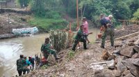 Pembangunan Jembatan Gantung Perintis Garuda di Desa Puhti Dikebut, Babinsa Ngawi dan Warga Kompak Gotong Royong